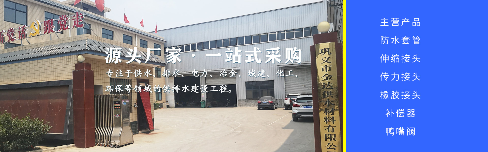 鞏義市金達(dá)供水材料有限公司是從事研制、開(kāi)發(fā)、生產(chǎn)鋼制,橡膠管件、法蘭的專(zhuān)業(yè)廠(chǎng)家。前身是鞏縣老兵工機(jī)械加工廠(chǎng),2006年改制成立股份制公司,公司占地面積20000平方米,公司現(xiàn)有員工163人,其中高級(jí)工程師3人,工程師6人,技術(shù)人員35人。金達(dá)主要生產(chǎn)下列產(chǎn)品:橡膠接頭系列:防水套管系列、伸縮器系列、傳力接頭系列、補(bǔ)償器系列、鴨嘴閥系列。